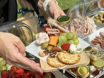 Features 3 Cheeses, 2 Cured Meats, 2 Fresh Fruits or Dried Fruit, Nuts and a variety of accompaniments.